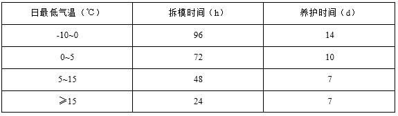 3、灌漿料達(dá)到拆膜時間后,可進(jìn)行設(shè)備安裝,具體時間參見“拆膜和養(yǎng)護(hù)時間及環(huán)境溫度的關(guān)系表”: